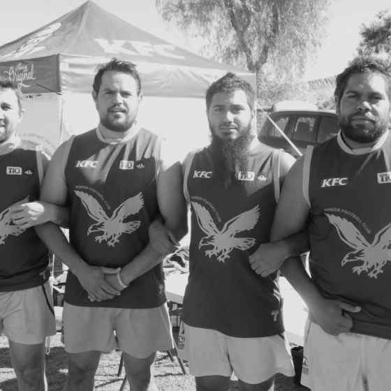 Western Aranda Coach Lofty Katakarintja, his coaching assistants and senior players met with NO MORE Campaign workers in Hermannsburg before deciding to commit to an Action Plan as a means through which the club could make a positive difference in the community.